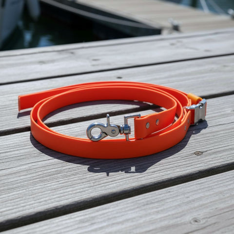 Experience a new level of freedom and control on every walk with the Orange Explorer leash. Engineered for ultimate versatility, its innovative handle system allows for a comfortable hands-free experience around your waist or over the shoulder. It also adjusts into a classic handle for moments requiring more direct guidance.